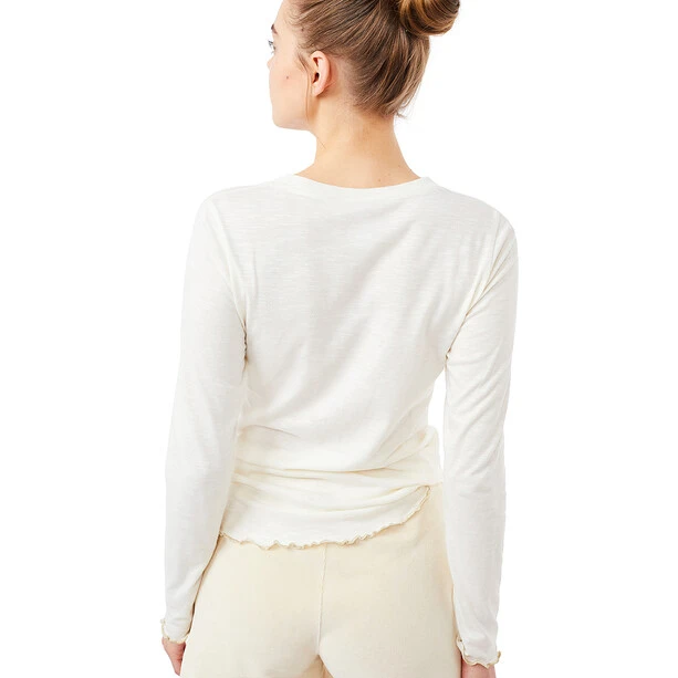 The long-sleeved shirt made of soft modal-organic cotton mix (100% organic) is a warm base layer or comfortable to wear after yoga class.